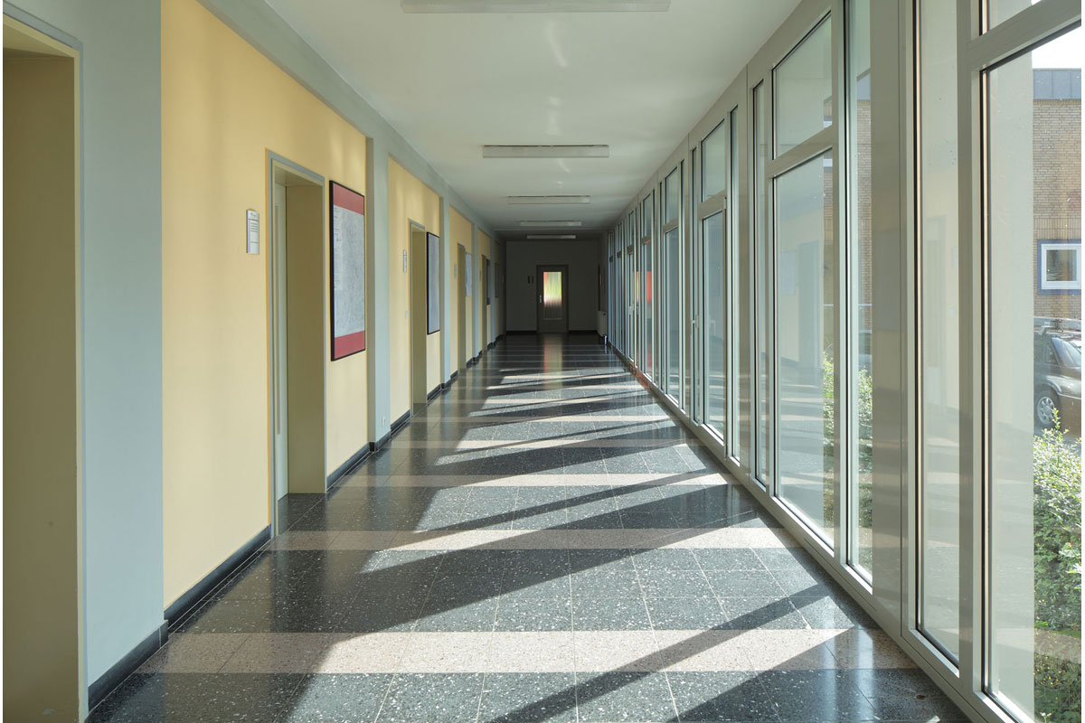 Trotz neuer Treppenhausverglasung, neuer Fassadentafeln und dem Austausch von Fensterbändern bleibt der ursprüngliche Charakter des Gebäudes erhalten.