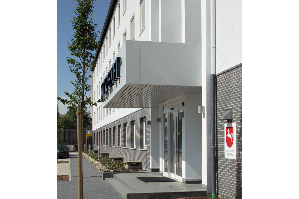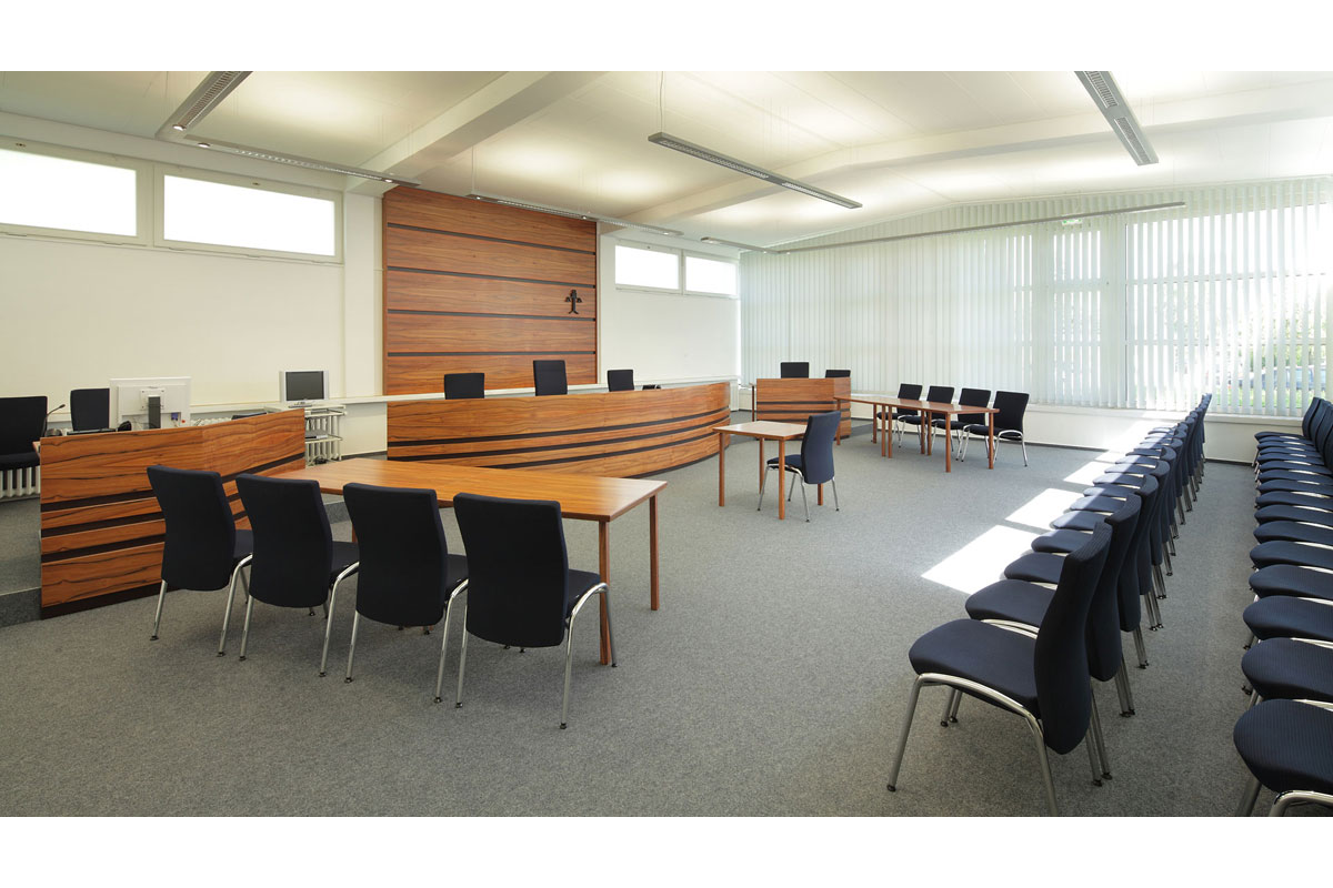 Obwohl durch das Gebäude, der ehemaligen Standortverwaltung der Bundeswehr, ein „straffes Korsett“ vorgegeben war, wurde das Gebäude ohne Ergänzungsbauten zu einem Amtsgericht mit fünf Sitzungssälen umgebaut.